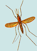蚊类是双翅目(Diptera)蚊科(Culicidae)昆虫,成虫刺吸式口器适于吸血。 蚊类有一对膜质透明的前翅,后翅退化为肉眼看不见的平衡棒。