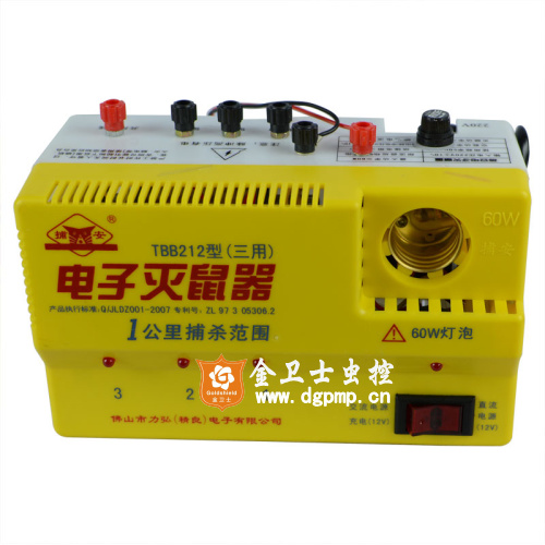 TBB212型三用机是集220V交流、12V直流灭鼠,加12V电池充电三功能于一体的多用途机,在开关位置选定交流或直流功能,交流兼可充12V电池。
